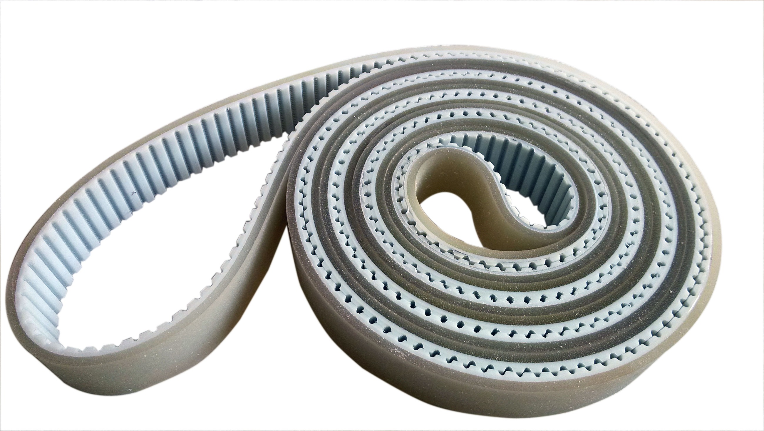 聚氨酯PU同步帶由進口熱塑聚氨酯材料制成,具有較高抗磨損能力,各種類型鋼絲芯保證其在傳動中仍然保持良好的運動能力,生產公差小。生產過程中在齒面和/或齒背加以一層尼龍以保證在特殊應用中的運行特殊性不變,還可在皮帶背面加厚一層聚氨酯以防止腐蝕或高負載。