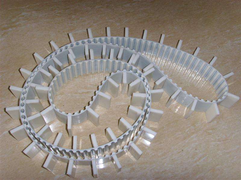 同步帶傳動是由一根內周表面設有等間距齒的封閉環形膠帶和相應的帶輪所組成。運動時,帶齒與帶輪的齒槽相嚙合傳遞運動和動力,是一種嚙合傳動,因而具有齒輪傳動、鏈傳動和平帶傳動的各種優點 。同步帶傳動具有準確的傳動比,無滑差,可獲得恒定的速比,可精密傳動,傳動平穩,能吸震,噪音小,傳動速比范圍大。結構緊湊還適用多軸傳動,張緊力小,不需潤滑,無污染,因而可在不允許有污染和工作環境較為惡劣的場合下正常工作。