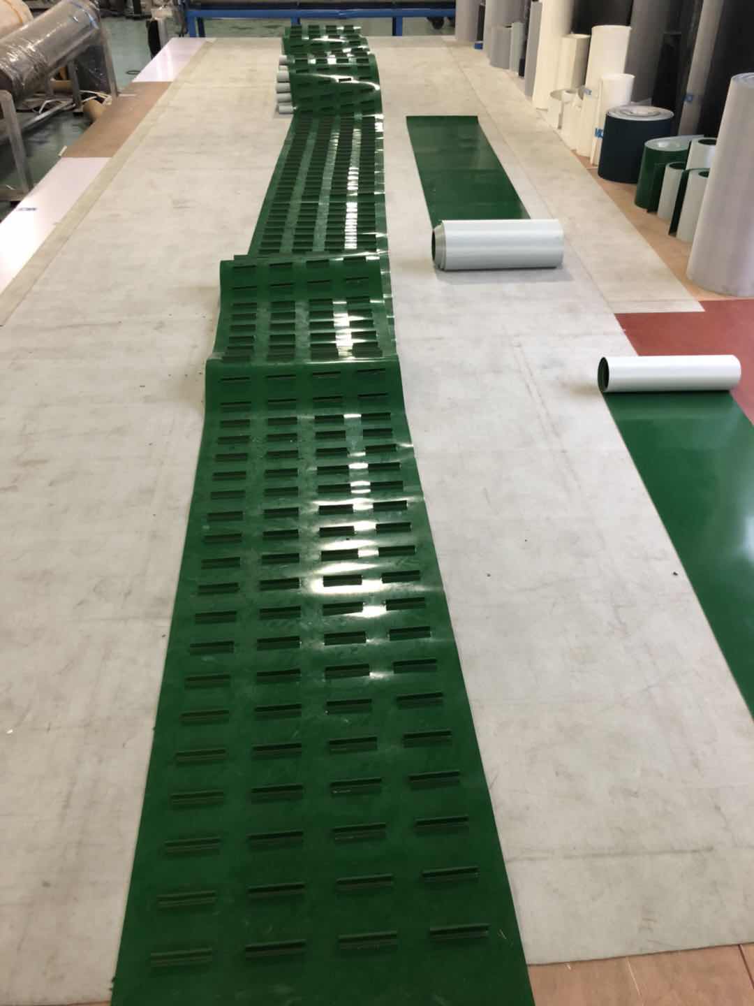 2.  輸送帶表面可加裙邊擋板; 輸送帶背面可加導條、紅膠、海綿等特殊加工。