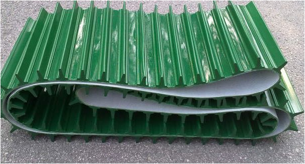 輸送帶(裙邊擋板帶),擋邊起防止物料測滑撒落的作用。為便于轉彎,裙邊設計成波紋狀;橫隔板的作用是承托物料,為了實現大傾角輸送,采用T型TC型。檔邊和橫隔板是用二次硫化的方法與基帶連接的,具有很高的連接強度。用于輸送易散落的粉狀、粒狀、小塊狀、糊狀及液態狀物料。