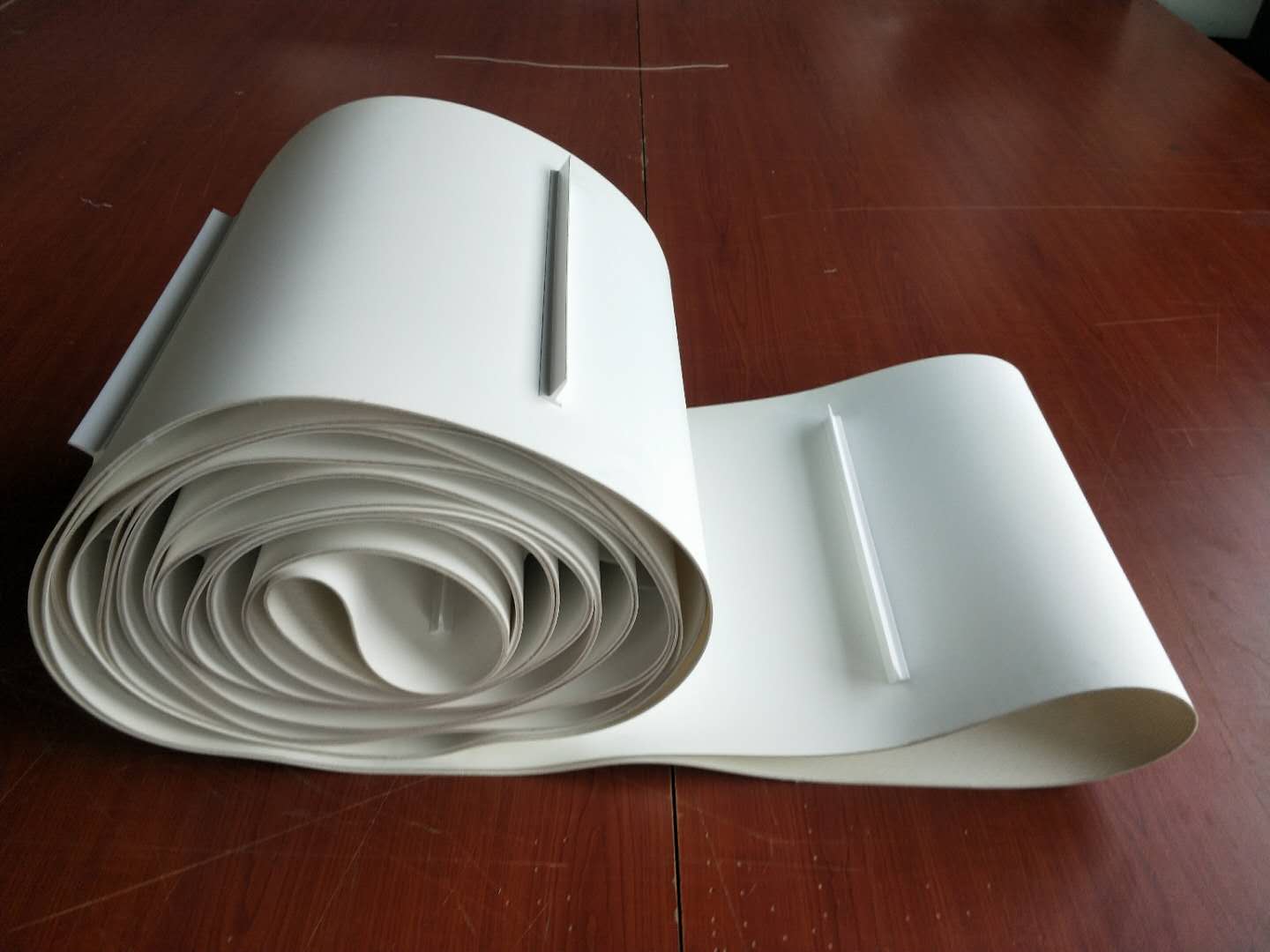 原材料產品配方科學合理,符合食品衛生標準可與食品直接接觸,色澤適度,無異味。并且具有:耐油、耐腐蝕、耐寒、耐切割等特性。聚氨酯(PU)輸送帶使用經過特殊處理的高強度人工合成聚氨酯織物作為承載骨架,涂覆層由聚氨酯(PU)樹脂制成。不但具有普通輸送帶抗拉強度高、曲繞性好、輕、薄、韌等特點,而且耐油,無毒衛生,容易清洗。該類輸送帶完全符合美國FDA衛生標準,耐磨,抗物理老化,是一種經久耐用的輸送產品。