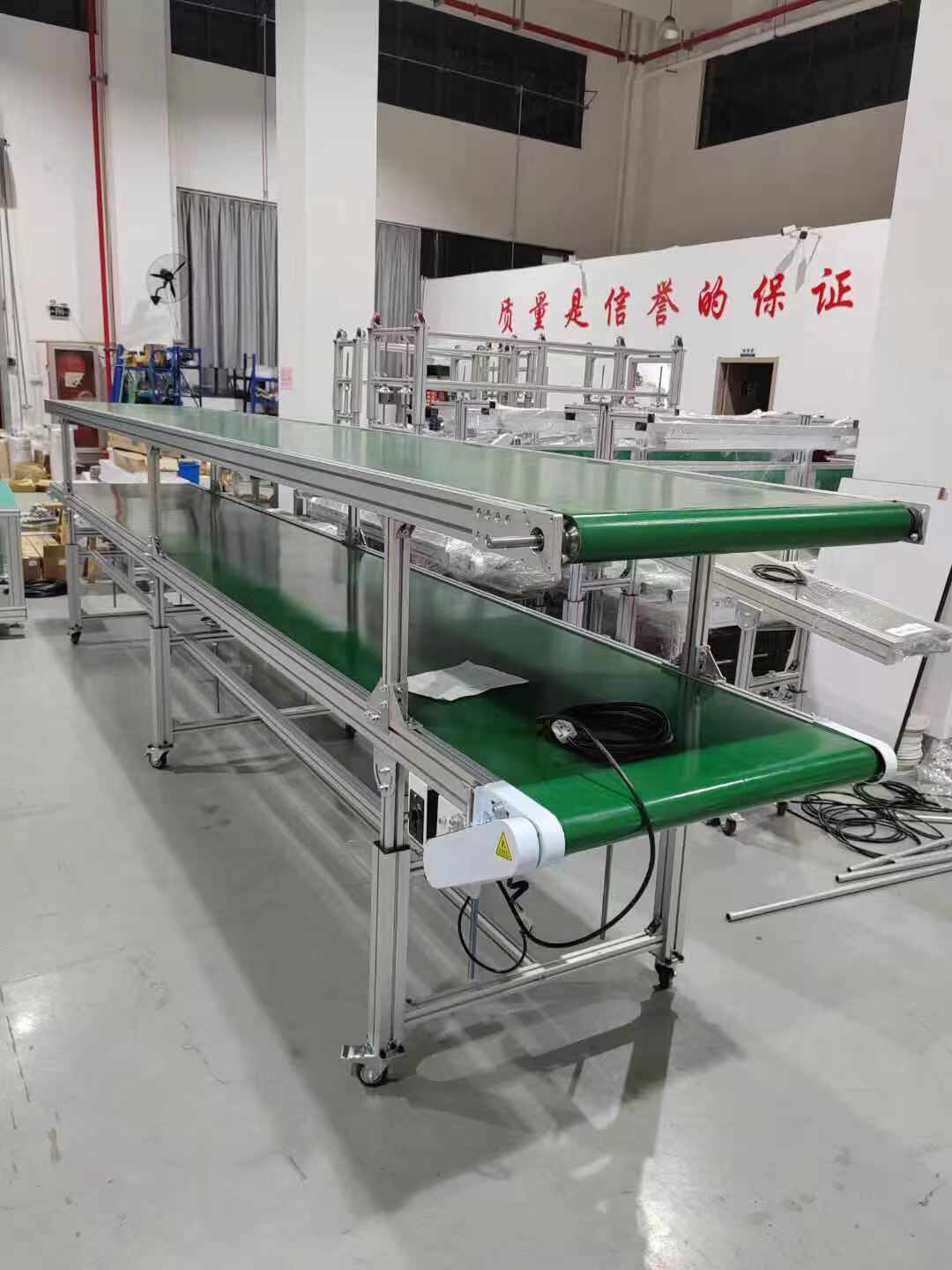 皮帶線廣泛應用于家電、電子、電器、機械、煙草、注塑、郵電、印刷、食品等各行各業,物件的組裝、檢測、調試、包裝及運輸等。線體輸送可根據工藝要求選用:普通連續運行、節拍運行、變速運行等多種控制方式;線體因地制宜選用:直線、彎道、斜坡等線體形式。